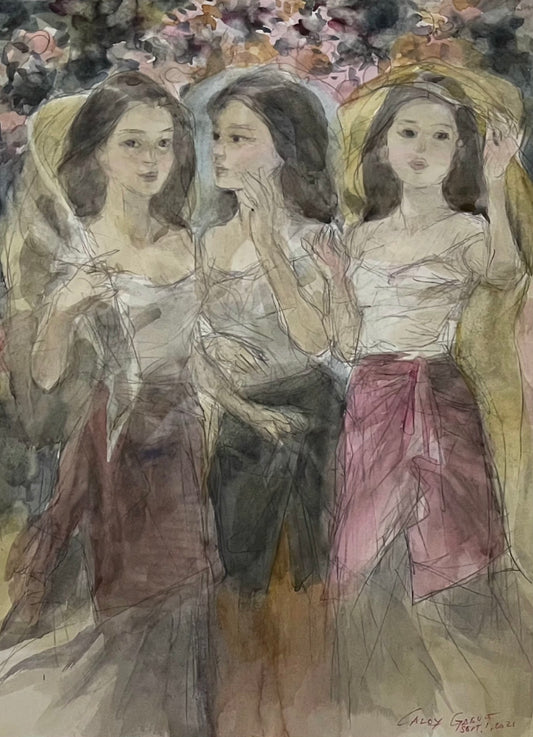 Gabuco's works focus on human faces and celestial beings, with unique expressions that convey melancholic and insightful messages. His art takes the viewer on an inner journey as they gaze into the subjects' eyes, which seem to penetrate the soul.