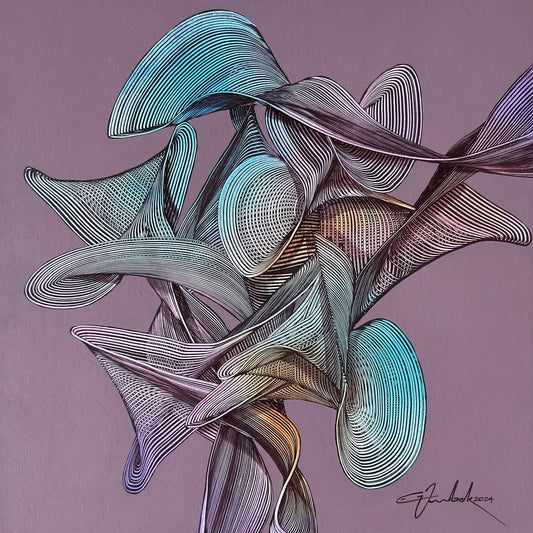 “Ombok” Villamor (b. 1979), whose recent oeuvre is characterized by fascinating abstractions of life-forms. The resulting paintings are organic narratives that bring out the rich dynamism and energy of life. This is keeping with the artist’s own explorations of nature—particularly his experience living on the shores of his native Samar in central Philippines. The ethereal paintings are most reminiscent of the country’s sea-life – a direct link to the artist’s roots – but they also celebrate the delights of other life-forms. In many cases, his paintings take on an almost spiritual essence—looking like they are floating life-nurturing galaxies in the middle of the vacuum of space.