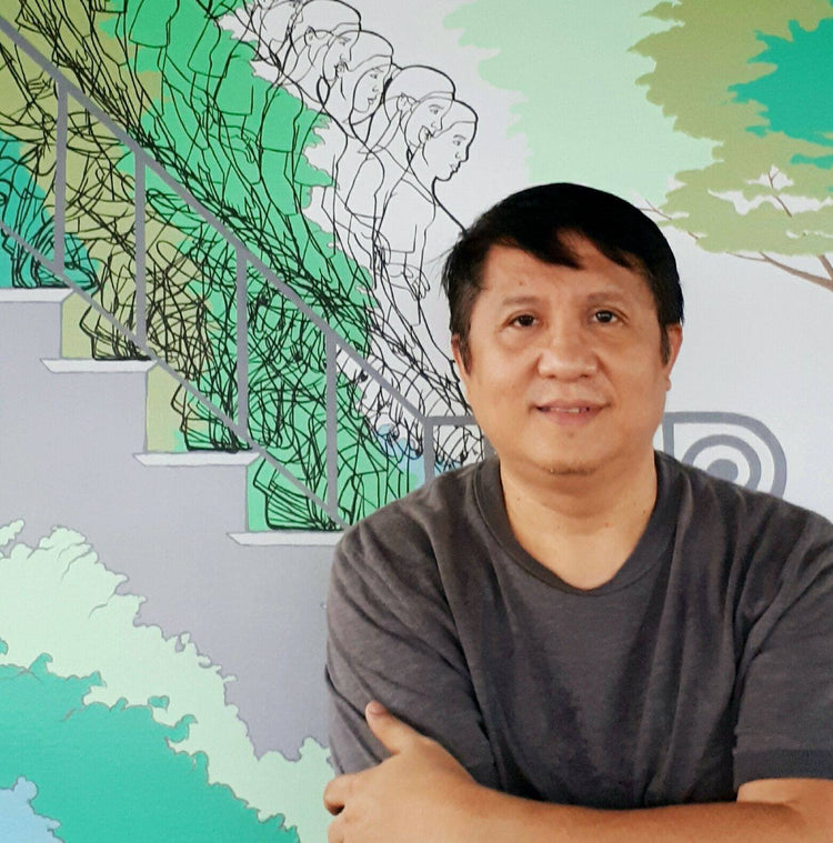In his years working in animation he has accomplished much in, however amidst his work is his undying love for painting. While he was doing animation, he never stopped honing and exploring his skills on the canvas. In the span of this time, he joined competitions and was recognized by Metrobank Foundation Art Competition three times. In ’89 an honorable mention, in ’93 he won third place and in ’96 an honorable mention, thus qualifying him to be a member of NET which stands for “network of winners” from Metrobank’s roster of past winners.