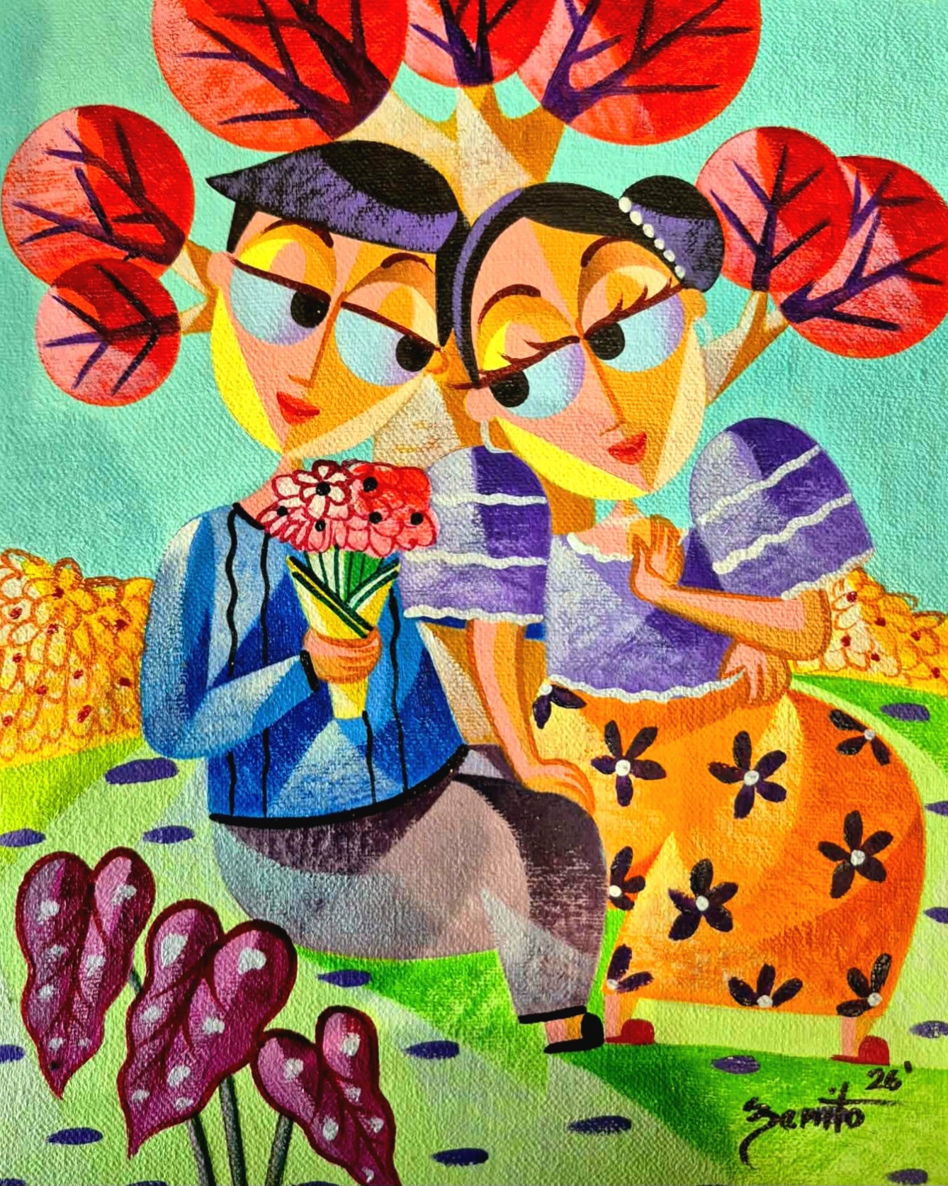 Jovan Benito 40 years old From Sta Cruz Laguna Born April 12 1982 Elementary 88 – 94 Secondary 94- 98 Nagsimula ang aking inters sa pag guhit ay nung bata pa ako. Dahil ang aking ama ay isang art sign artist, bata pa lang ako ay un na ang ikanabubuhay ng aming pamilya, kaya ganun ba lang ang aking bilib sa pag guhit ng aking ama, kaya di malabong , hindi ako mahihilig sa pag guhit. Ngunit maagang nawala ang aking ama maagang nakapag asawa , at yun ay si Jerry Morada , at ang nakakatuwabg isipin isa rin itong artist. Non nakita nya ang hilig ko sa pag guhit , dahil naging libangan ko ang gumuhit ng project sa school ng mga studyante, ang aking asawa pa lang ang nag pipinta non, mibsan sinubukan nya akong gawing aprentice at , nagtagal iyo, naisip nya rin na pagawain ako ng aking gusto. Dito ko naisip ang stilo, ang bilugang mga mata at makukulay na pilipinyanang mga danit.