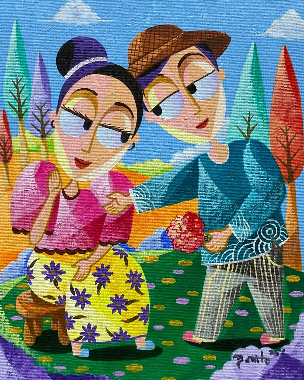 Jovan Benito 40 years old From Sta Cruz Laguna Born April 12 1982 Elementary 88 – 94 Secondary 94- 98 Nagsimula ang aking inters sa pag guhit ay nung bata pa ako. Dahil ang aking ama ay isang art sign artist, bata pa lang ako ay un na ang ikanabubuhay ng aming pamilya, kaya ganun ba lang ang aking bilib sa pag guhit ng aking ama, kaya di malabong , hindi ako mahihilig sa pag guhit. Ngunit maagang nawala ang aking ama maagang nakapag asawa , at yun ay si Jerry Morada , at ang nakakatuwabg isipin isa rin itong artist. Non nakita nya ang hilig ko sa pag guhit , dahil naging libangan ko ang gumuhit ng project sa school ng mga studyante, ang aking asawa pa lang ang nag pipinta non, mibsan sinubukan nya akong gawing aprentice at , nagtagal iyo, naisip nya rin na pagawain ako ng aking gusto. Dito ko naisip ang stilo, ang bilugang mga mata at makukulay na pilipinyanang mga danit.