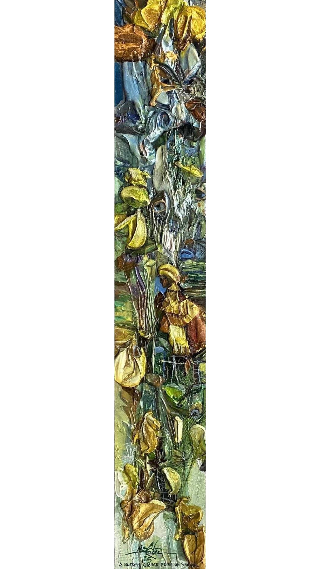Despite financial limitations preventing him from formally pursuing Fine Arts, Marquez enrolled in a Drafting course at Bulacan State University in 1993. Though technical in nature, this education did not satisfy his artistic aspirations. His father, a respected painter, became his mentor, instilling in him discipline and a profound respect for the power of visual narratives. For over a decade, Marquez set aside his artistic pursuits to run a sign-making business. However, in 2011, a friend’s encouragement reignited his passion for painting, marking his return to the art world with renewed purpose and depth.
