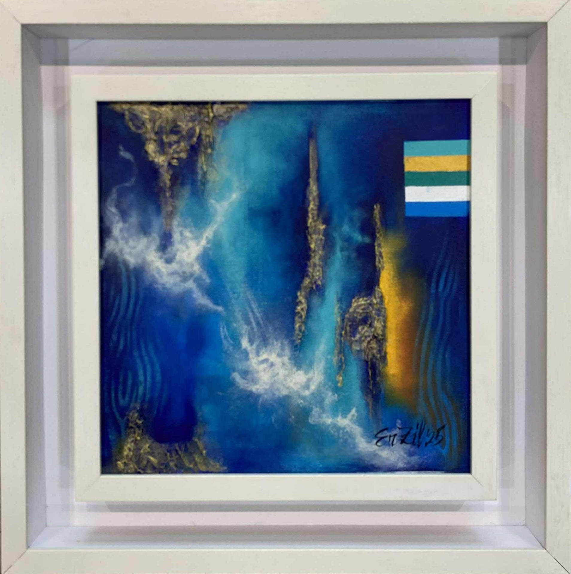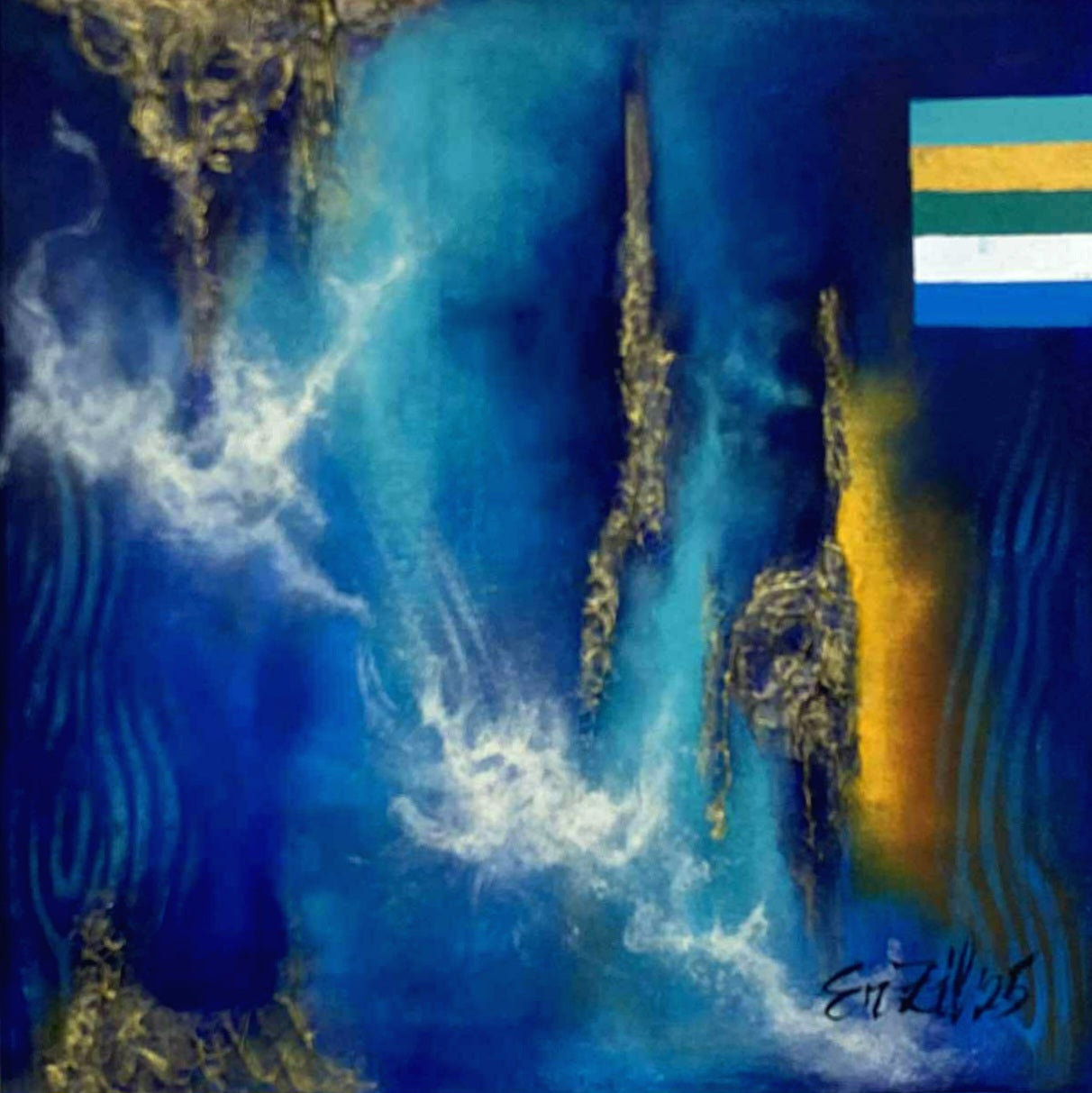 Gold has become her signature in her artworks, not only for its richness but for the sense of majesty and energy it brings to the canvas. Often paired with soft brushed whites that flow like clouds across the surface, giving each piece a feeling of openness and quiet presence.  The contrast between brilliance and breath allows Erzil’s paintings to hold both drama and calm, guiding viewers into spaces of peace, light and wonder.