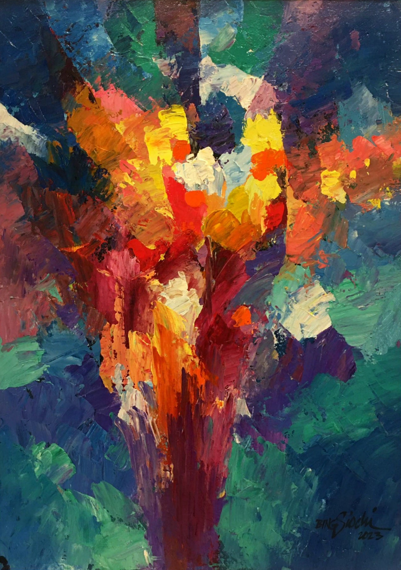 At an early age, he worked as a layout artist in one of several outdoor advertising in Davao City where he honed up on creativity. It was at a time that the call of real artistry beckoned the young Siochi. During his spare time, he wielded his brush with complete abandon making canvas the outlet of early memories.