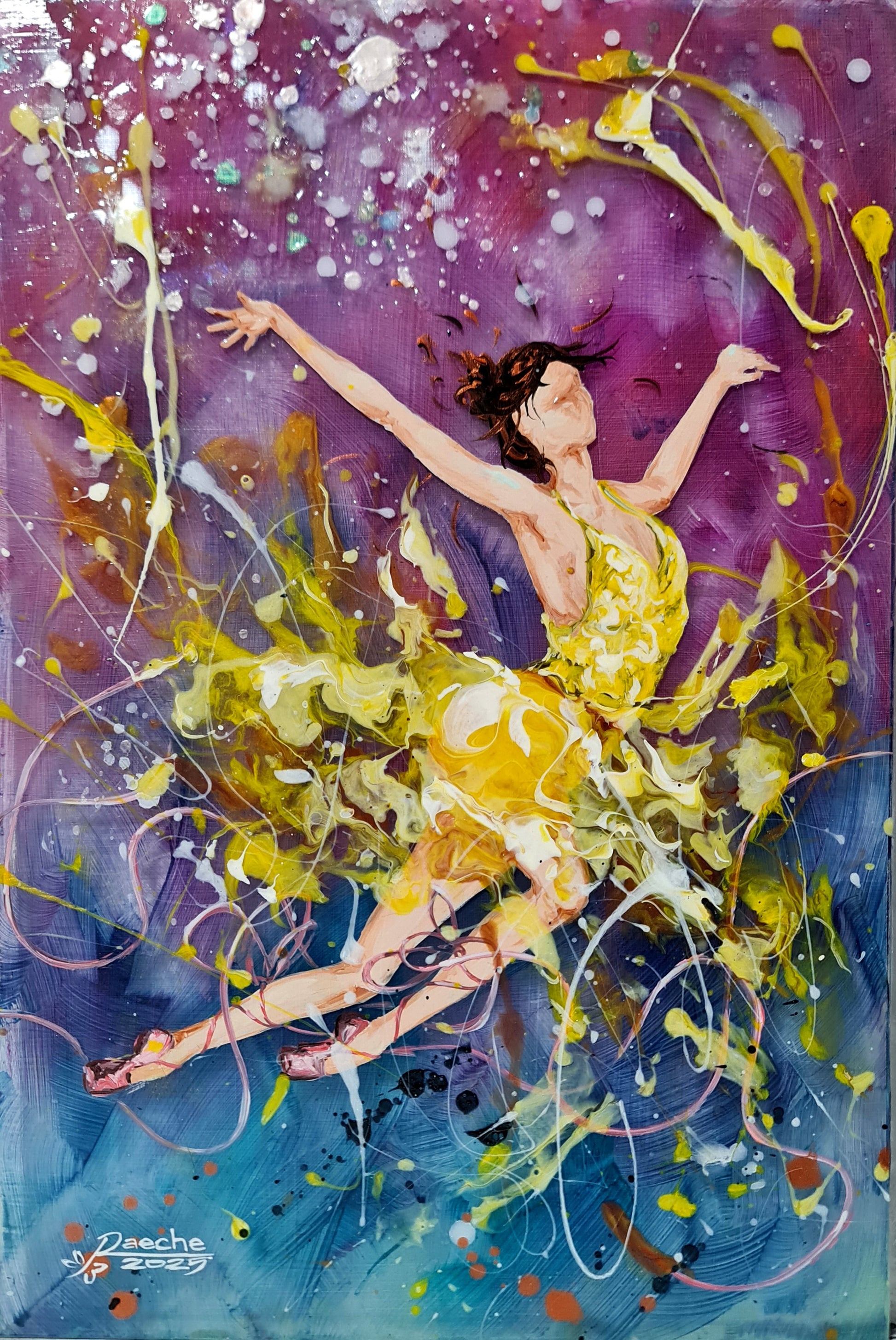 Expressions in movement. The artist paints as to where her colors lead her. Rich and bright tones – blues, purples – with a fluid style that captures the essence of her subject through the motions it possesses. Diverse poses, raw and spontaneous, that depict the fleeting nature of an expression, be it elemental or emotional.