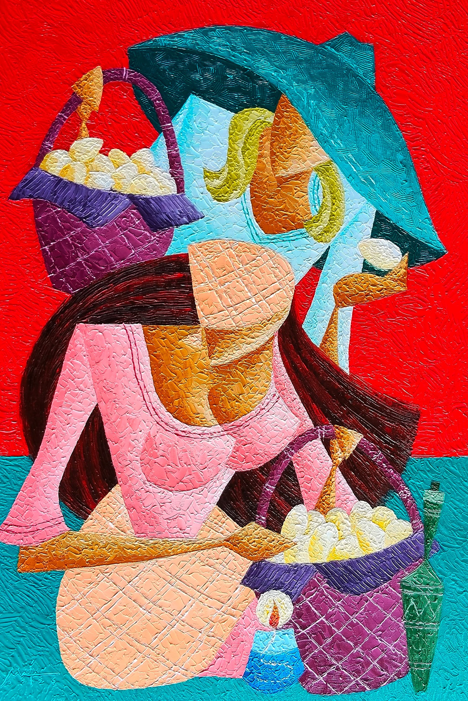 A Filipino Artistic voice echoing persistence, patience, passion for her art, accentuating a sense of adventure, tempered by discipline and faith. Multi-awarded and recognized Filipina artists Maia Magpantay from Angono, Rizal is a palette knife painter. She paints in oil using the palette knife. Maia expresses her simple imaginative art through vibrant coloration with roughening strokes and textures. Her interest the simplicity of shapes and unique colorful fetes is here depiction of the celebration and modesty of life.