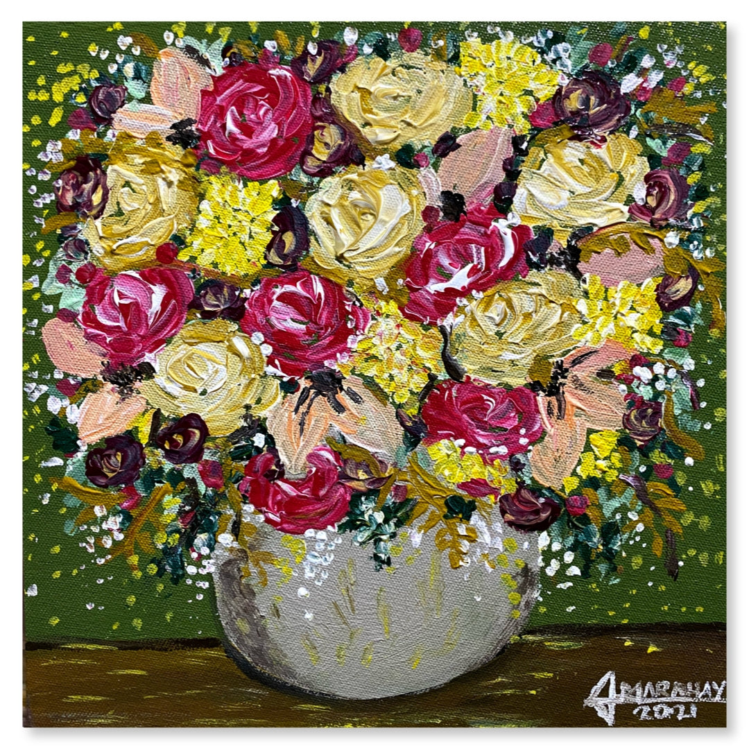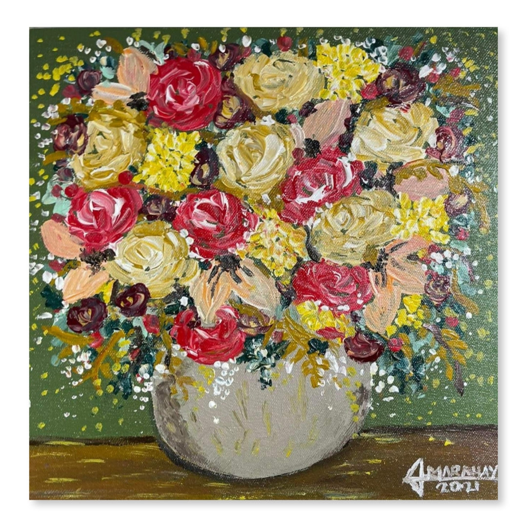 Janelle Marahay is a Manila-based artist who specializes in floral pieces. Her love for flora was cultivated by the environment of her hometown, Guimaras Island. Her art style focuses on combining the traditional and modern by incorporating abstract and impressionist techniques as well as the usage of vibrant colors, to portray a classic and timeless subject.