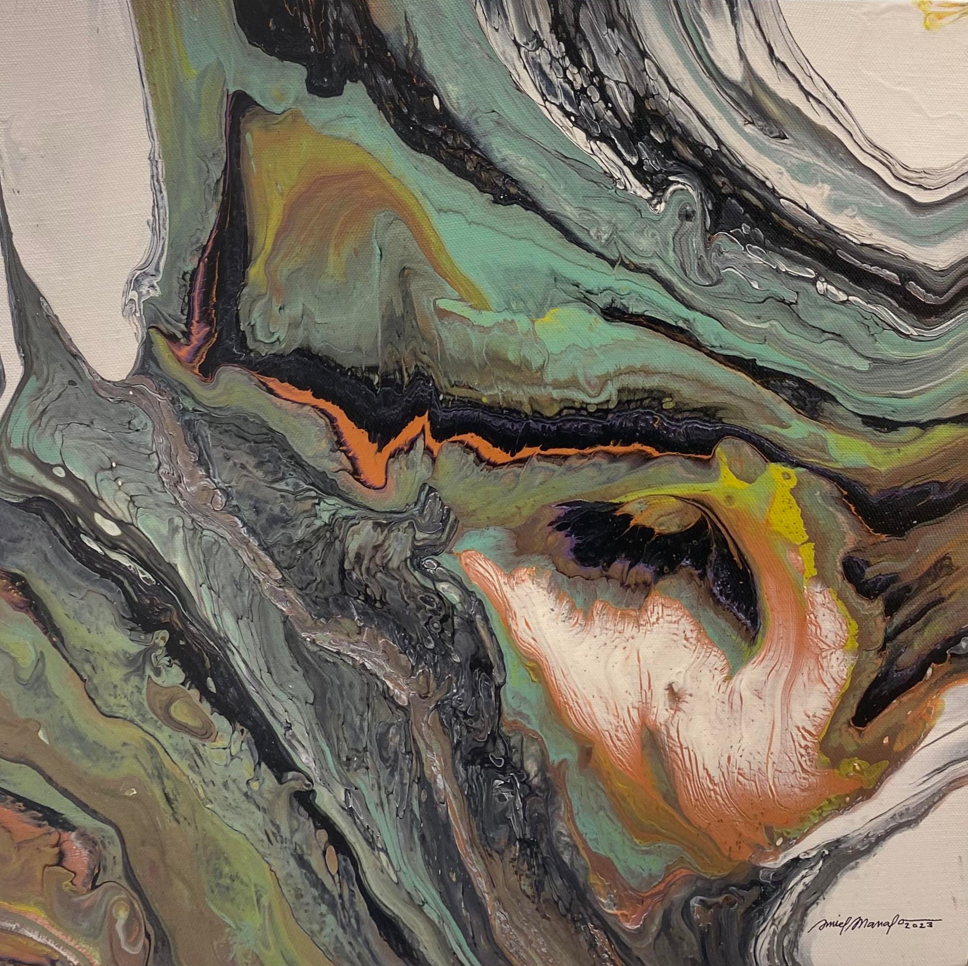 The conflicts of the modern world are the common subjects of Mr. Amiel Manalo's early paintings. He sees himself as a "Visual Poet" and his detailed images depict the destruction of the environment, political and social injustices as well as cultural and religious conflicts.