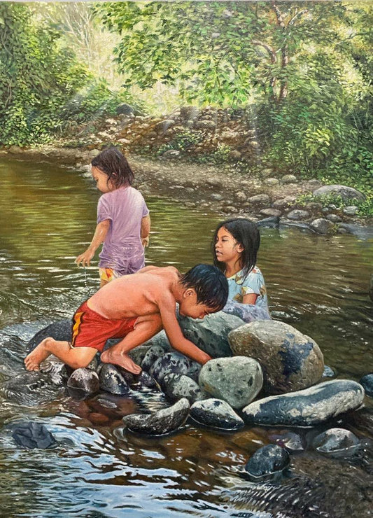 In his younger years, his works featured an ensemble of dark and complex "biomechanic" themed imagery but has evolved into a more surreal style that depicts an almost eerie representation of deep emotions that could compel those who sees it. He uses vivid and contrasting tones in his paintings to give a strong visual presence, enhance by his skills at rendering eye-catching details and lifelike figure. The resulting works transform the standard notion of realism into a uniquely surreal form. He is continuously evolving and improving his crat as an artist and is now currently exploring new styles and techniques, ranging from hyper realism, abstract and mixed media art.