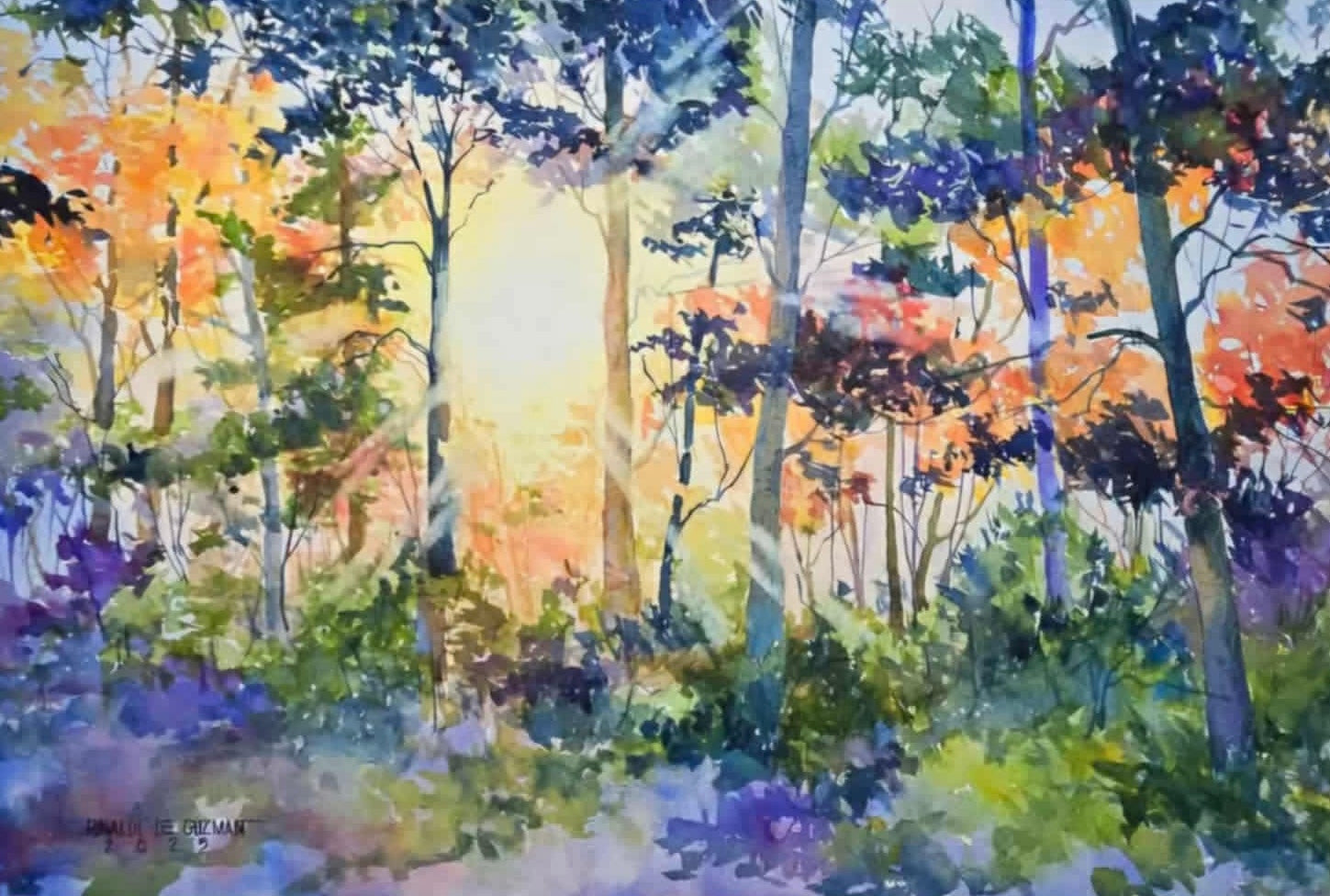 He decided to take up the challenge and paint again when the pandemic struck, practicing and honing his skills in the visual arts. Brimming with ideas, he cannot wait to get started on each piece. Still in search of his style, a signature, if you will, from the figurative to non-figurative, impressionistic to expressionistic to abstract, he considers each work at the moment as experimental. At present he prefers watercolors because of its immediacy and the various techniques that can be applied in its application. Dr. De Guzman finds its unpredictability a challenge providing a satisfaction when the outcome is a beautiful work of art. He has used oils and acrylics in the past and shifts mediums every now and then as his mood dictates. He finds inspiration in his surroundings, from experiences, both past and present, from nature to everyday objects to memories in the remote past. He also is drawn to Filipiniana themes with its multiple facets of interpretation.