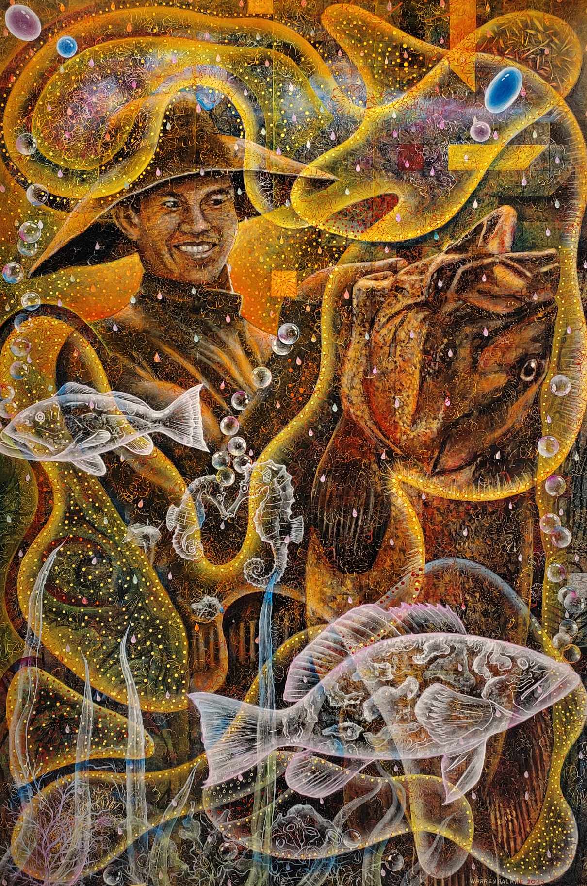 Warren is an award-winning fine artist, born May 29, 1973. He started in the arts in 1993 after high school. In 1995 he met art critic Bobie Valenzuela of Hiraya Gallery who mentored him about the importance of narrative in painting, there he also met the young Borlongan, and Justiniani who taught him also some techniques. In 1997 he awarded as "Juror's Choice Winner" by the NCCA, during "The Diwa ng Sining 3rd Biennial Arts Awards" at Megamall Art Center. In year 1998 he obtained "Finalist Award" in the Philippine Centennial National Painting Competition, at AFP Museum, Camp Aguinaldo, Q.C. On April 2, 2011 he graduated and obtain his Bachelor's Degree in Fine Arts at Philippine Women's University- Taft Ave., M.M. During college- he won the grand prize award in the Philippine National Oil Company Art Competition; his composition about ex-President Corazon C. Aquino which exhibited at National Museum was purchased by the Aquino's; and he included in the "Petit Format" Fine printmaking group exhibition at Cultural Center of the Philippines which all took placed in 2010. In 2017 and 2018 he achieved a back to back Honorable Mention Awards in the (AAP) Art Association of the Philippines Annual On- the Spot Painting competition. And respectively in 2017 he won again an Honorable Mention Award in the GSIS Annual National Art Competition.