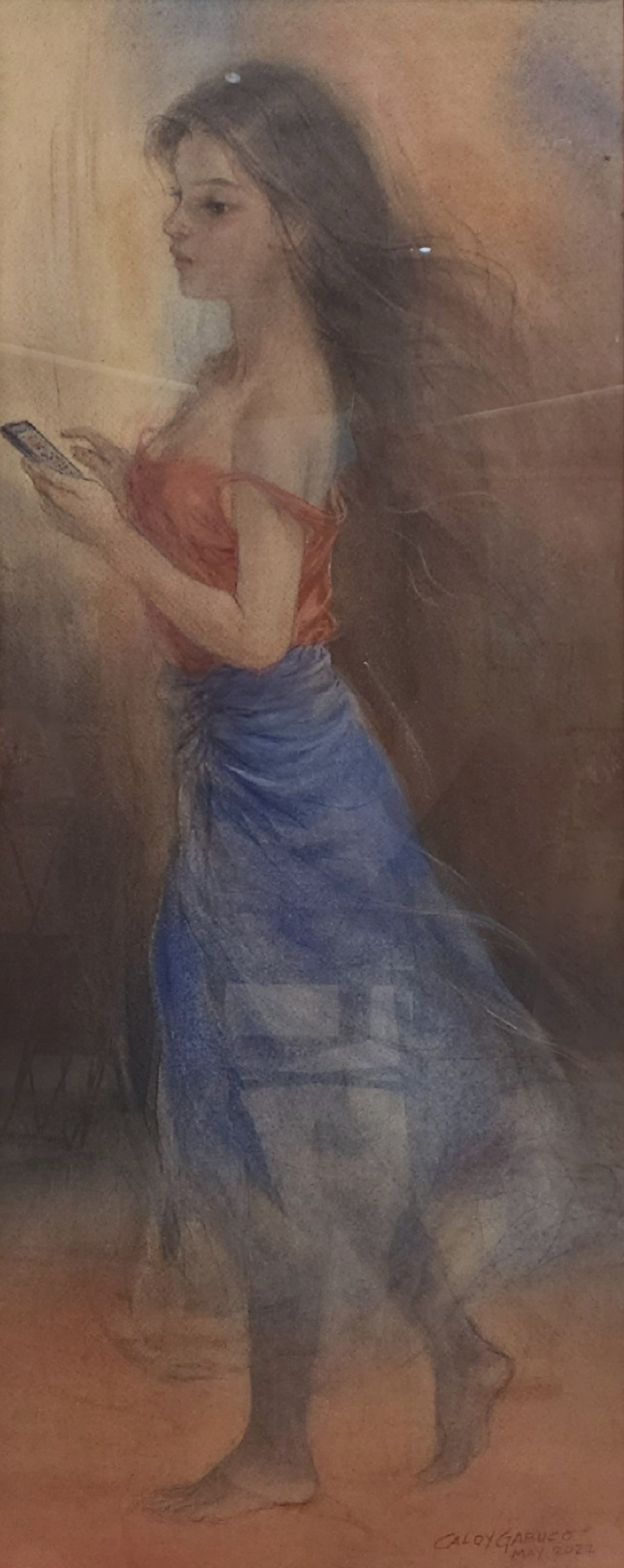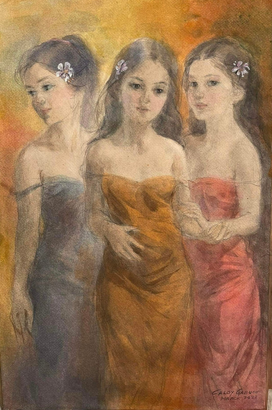 Gabuco's works focus on human faces and celestial beings, with unique expressions that convey melancholic and insightful messages. His art takes the viewer on an inner journey as they gaze into the subjects' eyes, which seem to penetrate the soul.