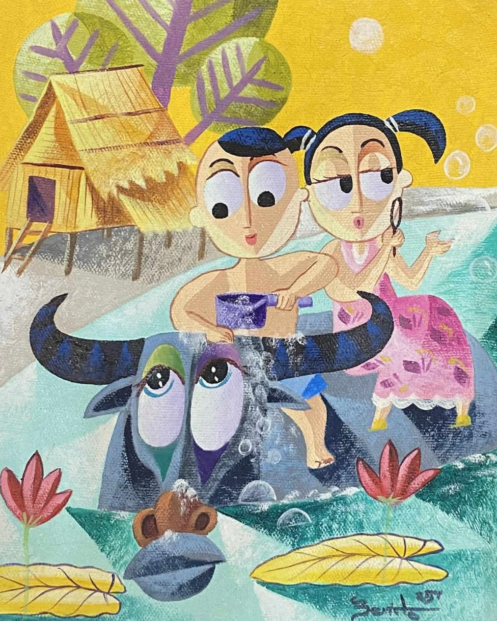 Jovan Benito 40 years old From Sta Cruz Laguna Born April 12 1982 Elementary 88 – 94 Secondary 94- 98 Nagsimula ang aking inters sa pag guhit ay nung bata pa ako. Dahil ang aking ama ay isang art sign artist, bata pa lang ako ay un na ang ikanabubuhay ng aming pamilya, kaya ganun ba lang ang aking bilib sa pag guhit ng aking ama, kaya di malabong , hindi ako mahihilig sa pag guhit. Ngunit maagang nawala ang aking ama maagang nakapag asawa , at yun ay si Jerry Morada , at ang nakakatuwabg isipin isa rin itong artist. Non nakita nya ang hilig ko sa pag guhit , dahil naging libangan ko ang gumuhit ng project sa school ng mga studyante, ang aking asawa pa lang ang nag pipinta non, mibsan sinubukan nya akong gawing aprentice at , nagtagal iyo, naisip nya rin na pagawain ako ng aking gusto. Dito ko naisip ang stilo, ang bilugang mga mata at makukulay na pilipinyanang mga danit.