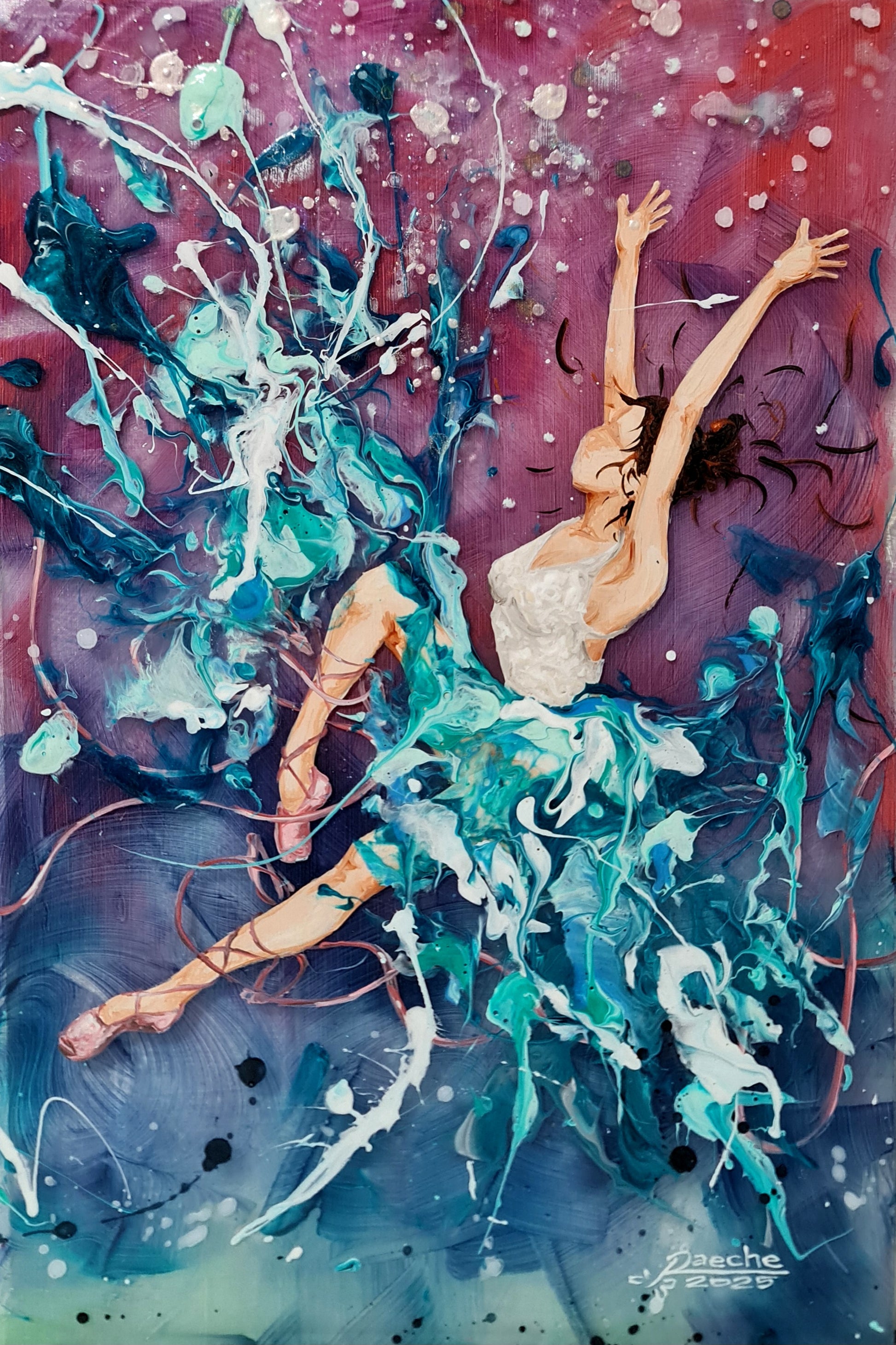 Expressions in movement. The artist paints as to where her colors lead her. Rich and bright tones – blues, purples – with a fluid style that captures the essence of her subject through the motions it possesses. Diverse poses, raw and spontaneous, that depict the fleeting nature of an expression, be it elemental or emotional.