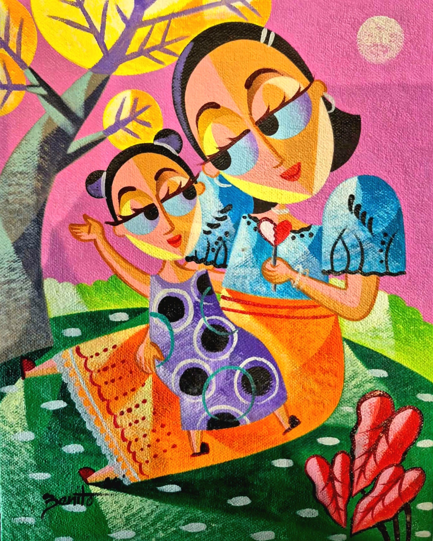 Jovan Benito 40 years old From Sta Cruz Laguna Born April 12 1982 Elementary 88 – 94 Secondary 94- 98 Nagsimula ang aking inters sa pag guhit ay nung bata pa ako. Dahil ang aking ama ay isang art sign artist, bata pa lang ako ay un na ang ikanabubuhay ng aming pamilya, kaya ganun ba lang ang aking bilib sa pag guhit ng aking ama, kaya di malabong , hindi ako mahihilig sa pag guhit. Ngunit maagang nawala ang aking ama maagang nakapag asawa , at yun ay si Jerry Morada , at ang nakakatuwabg isipin isa rin itong artist. Non nakita nya ang hilig ko sa pag guhit , dahil naging libangan ko ang gumuhit ng project sa school ng mga studyante, ang aking asawa pa lang ang nag pipinta non, mibsan sinubukan nya akong gawing aprentice at , nagtagal iyo, naisip nya rin na pagawain ako ng aking gusto. Dito ko naisip ang stilo, ang bilugang mga mata at makukulay na pilipinyanang mga danit.