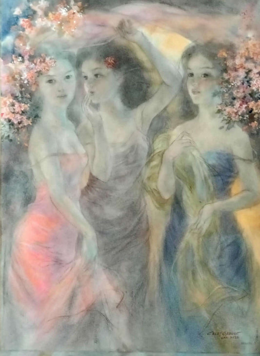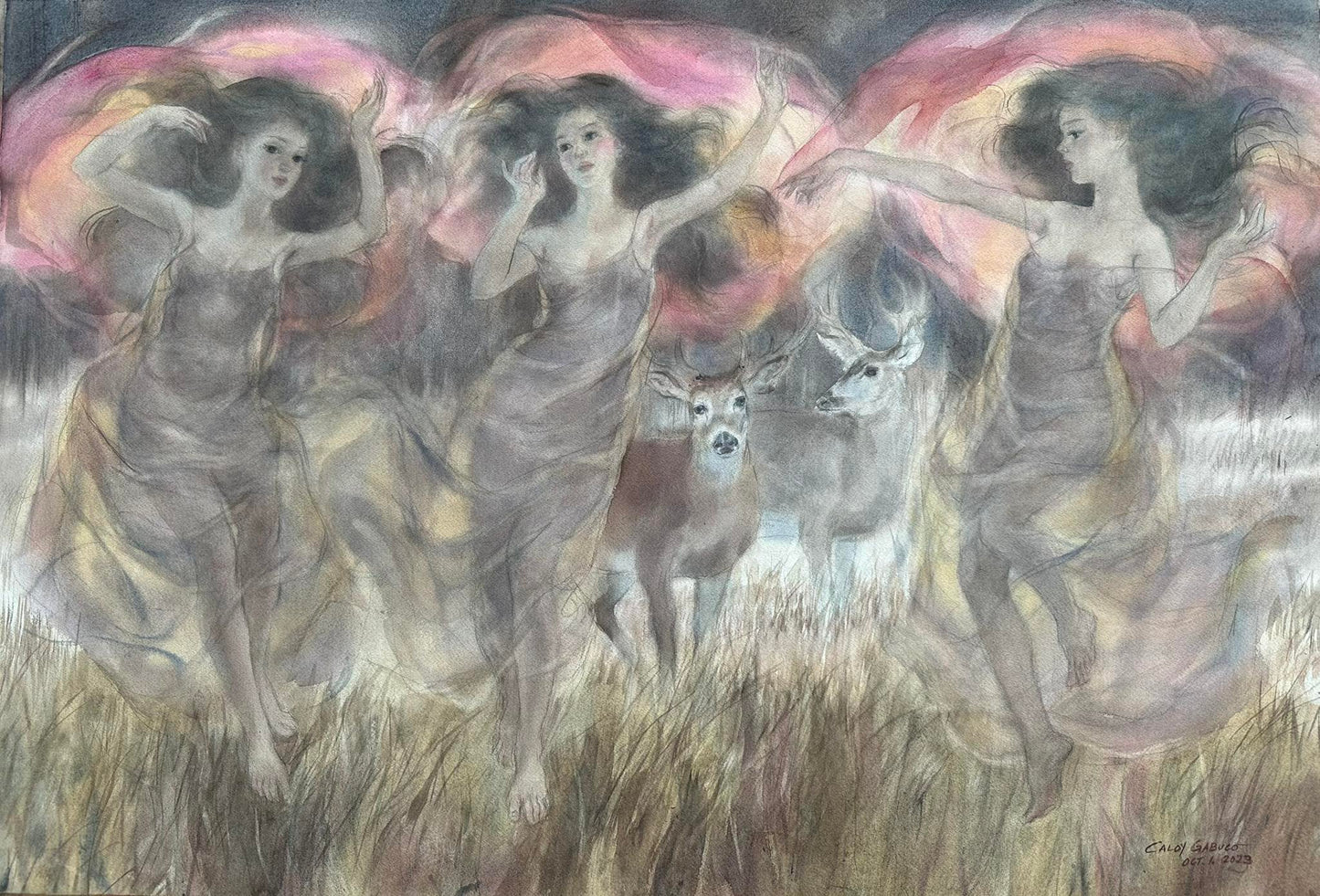 Gabuco's works focus on human faces and celestial beings, with unique expressions that convey melancholic and insightful messages. His art takes the viewer on an inner journey as they gaze into the subjects' eyes, which seem to penetrate the soul.