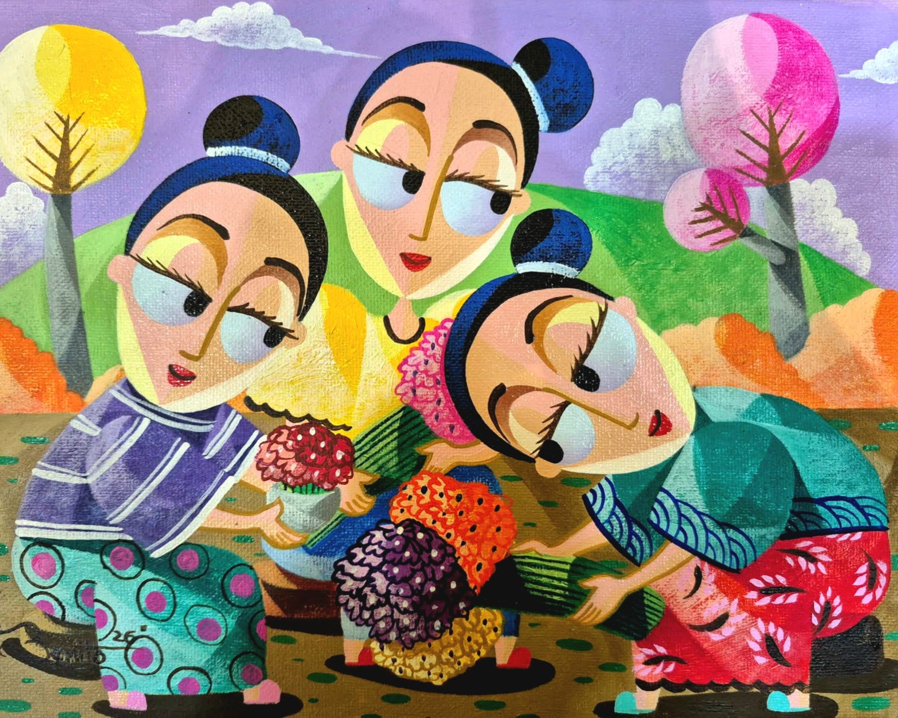 Jovan Benito 40 years old From Sta Cruz Laguna Born April 12 1982 Elementary 88 – 94 Secondary 94- 98 Nagsimula ang aking inters sa pag guhit ay nung bata pa ako. Dahil ang aking ama ay isang art sign artist, bata pa lang ako ay un na ang ikanabubuhay ng aming pamilya, kaya ganun ba lang ang aking bilib sa pag guhit ng aking ama, kaya di malabong , hindi ako mahihilig sa pag guhit. Ngunit maagang nawala ang aking ama maagang nakapag asawa , at yun ay si Jerry Morada , at ang nakakatuwabg isipin isa rin itong artist. Non nakita nya ang hilig ko sa pag guhit , dahil naging libangan ko ang gumuhit ng project sa school ng mga studyante, ang aking asawa pa lang ang nag pipinta non, mibsan sinubukan nya akong gawing aprentice at , nagtagal iyo, naisip nya rin na pagawain ako ng aking gusto. Dito ko naisip ang stilo, ang bilugang mga mata at makukulay na pilipinyanang mga danit.