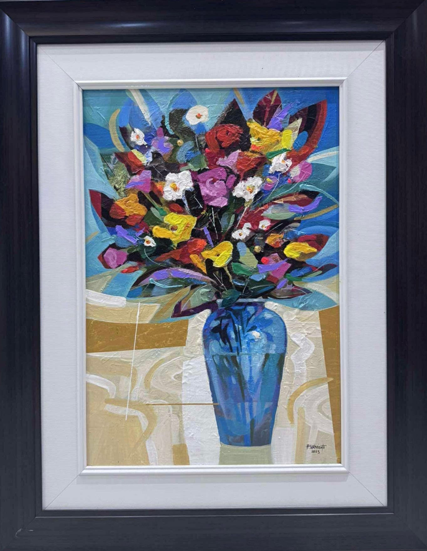 Unequivocal mastery of heritage houses in alluring setting; the subtle hues and perfect perspective adorn with vivid floral accents define the works of Fidel Malig Sarmiento.