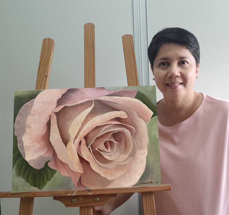Ape Castillo, a self-taught artist, was born and currently resides in Manila. She obtained a degree in Human Resource from De La Salle College of St. Benilde, and also completed a one-year basic course in PSID. At the age of 10, Ape discovered her passion for art and began sketching flowers and animals. Her uncle, a fashion designer, also played a significant role in inspiring her love for plants and flowers. This led her to spend most of her childhood in his workshop, where she was exposed to creativity and craftsmanship.