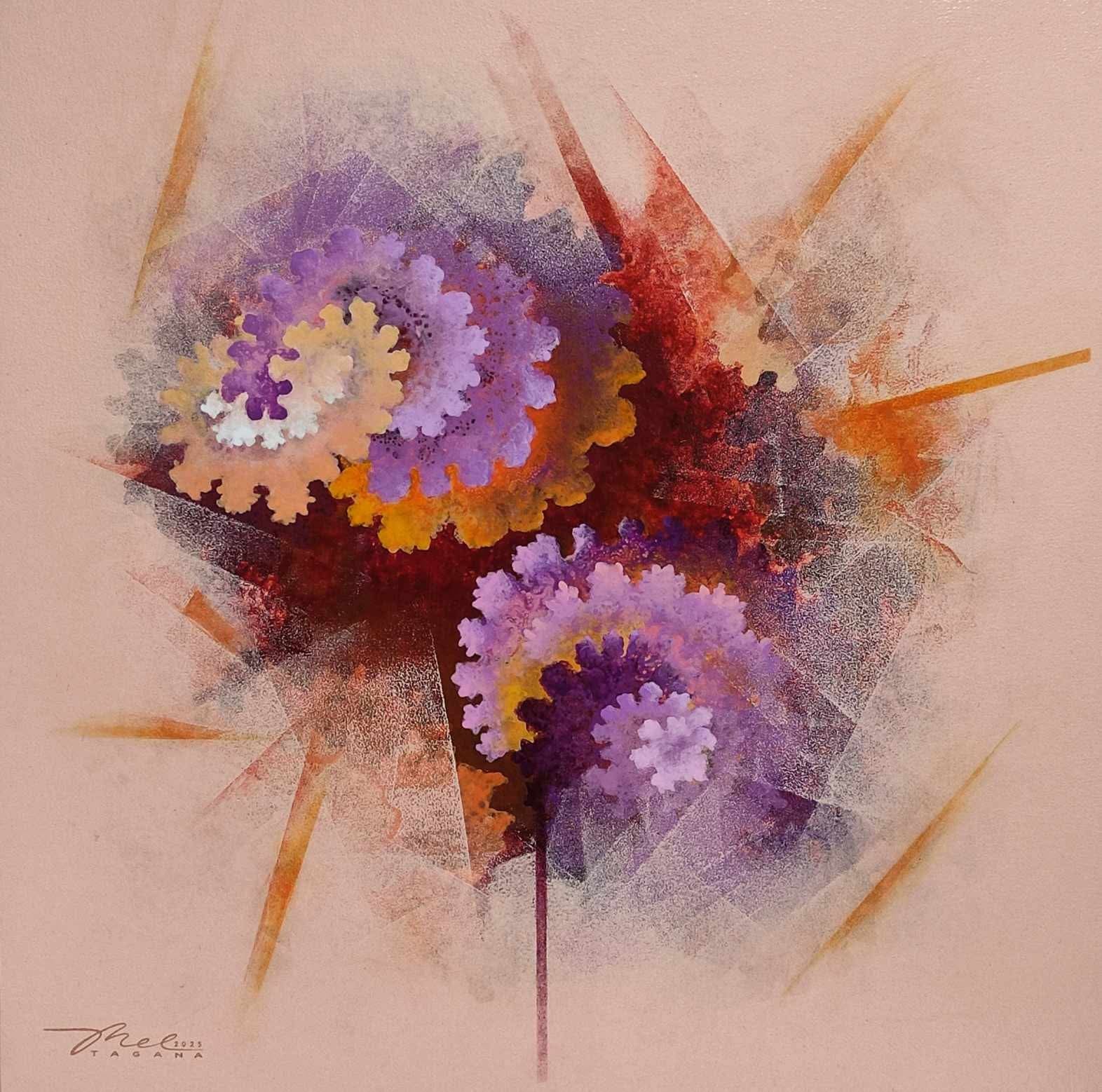 Melchor Tagana is a self-taught contemporary artist. He started early in his art practice, going the usual route of participating and winning in local contests as a young student until his college days. After graduating from his Interior Design course, he supplemented art making with his computer and graphic design skills, venturing into commercial art, photography, and teaching. His work is tactile, influenced by materials and texture. Tagana describes his paintings as internal landscapes that attempt to give tangible form to inner human emotions that include unbridled joy, grief, love and more sense of emotional depth. He shapes his works through a meditative process, integrating vibrant earth colours, providing movement, and setting elements in interesting compositions. He is the current President of Kolor han Biswal Arte nga Waraynon (Kolorbanwa).