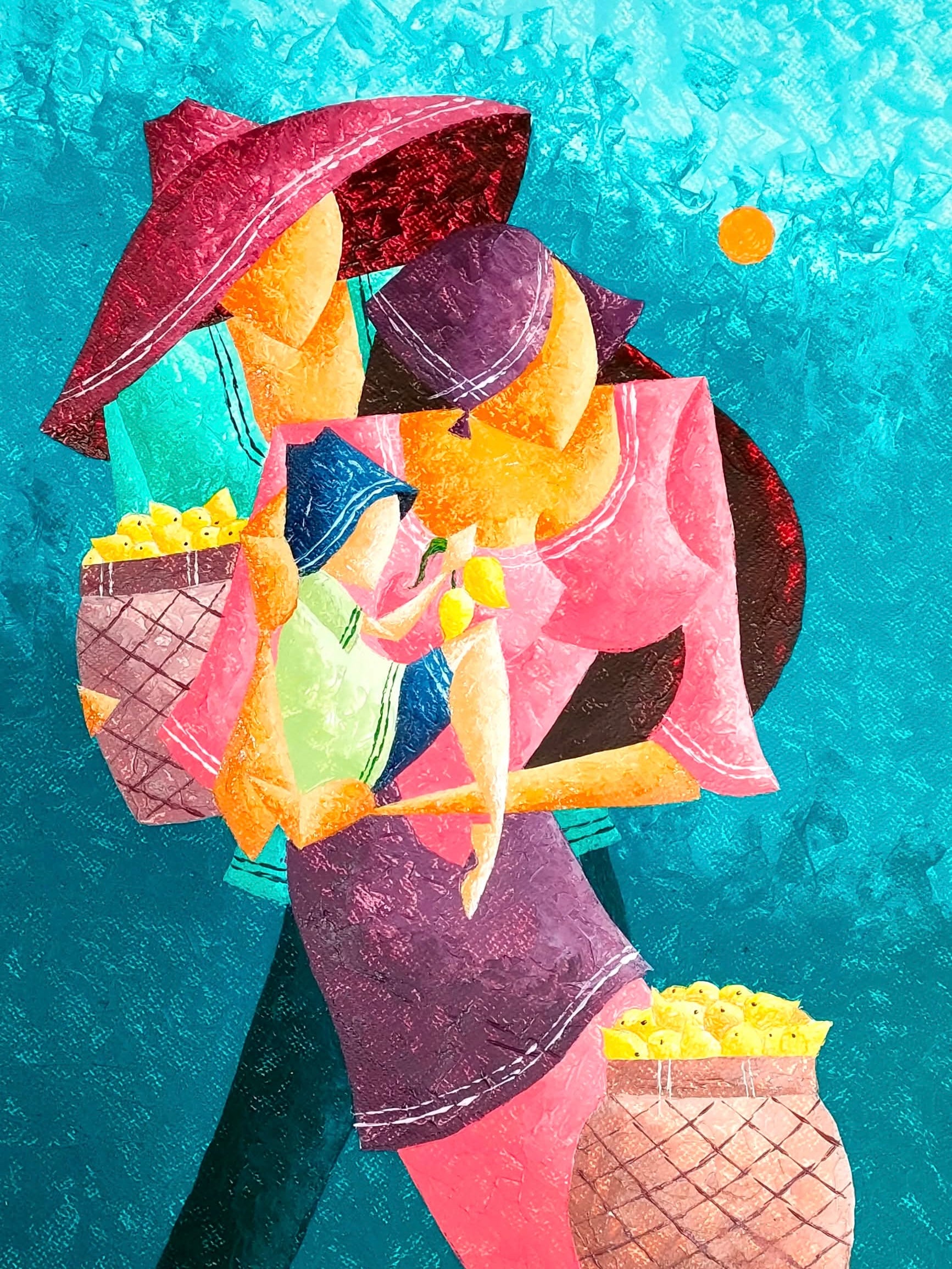 A Filipino Artistic voice echoing persistence, patience, passion for her art, accentuating a sense of adventure, tempered by discipline and faith. Multi-awarded and recognized Filipina artists Maia Magpantay from Angono, Rizal is a palette knife painter. She paints in oil using the palette knife. Maia expresses her simple imaginative art through vibrant coloration with roughening strokes and textures. Her interest the simplicity of shapes and unique colorful fetes is here depiction of the celebration and modesty of life.