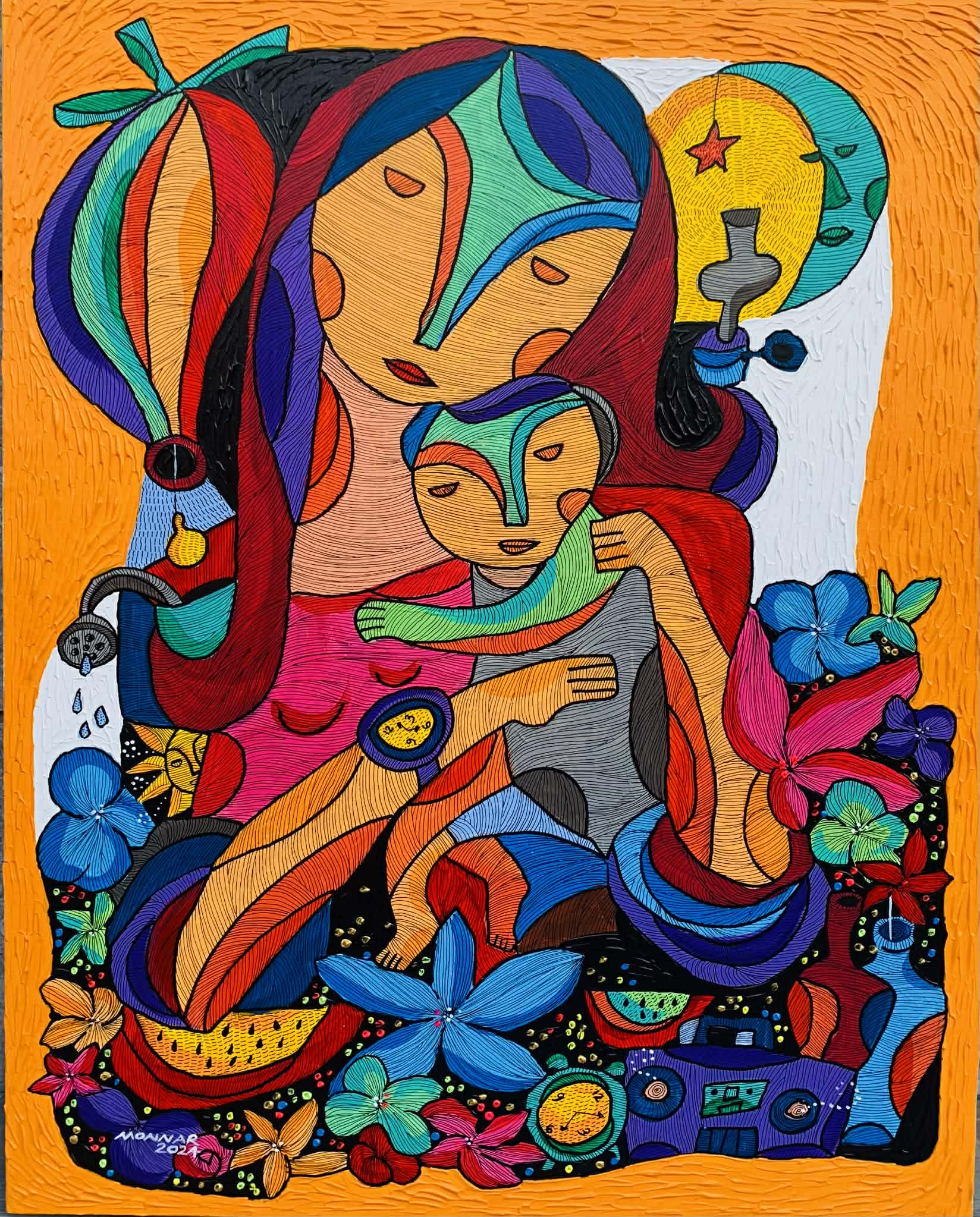 Mixed Media (Acrylic with Pen and Ink on Canvas)