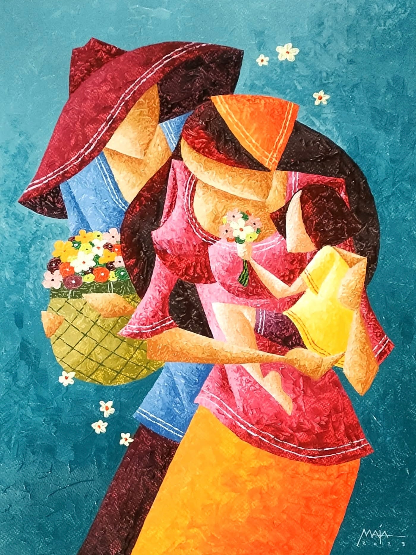 A Filipino Artistic voice echoing persistence, patience, passion for her art, accentuating a sense of adventure, tempered by discipline and faith. Multi-awarded and recognized Filipina artists Maia Magpantay from Angono, Rizal is a palette knife painter. She paints in oil using the palette knife. Maia expresses her simple imaginative art through vibrant coloration with roughening strokes and textures. Her interest the simplicity of shapes and unique colorful fetes is here depiction of the celebration and modesty of life.