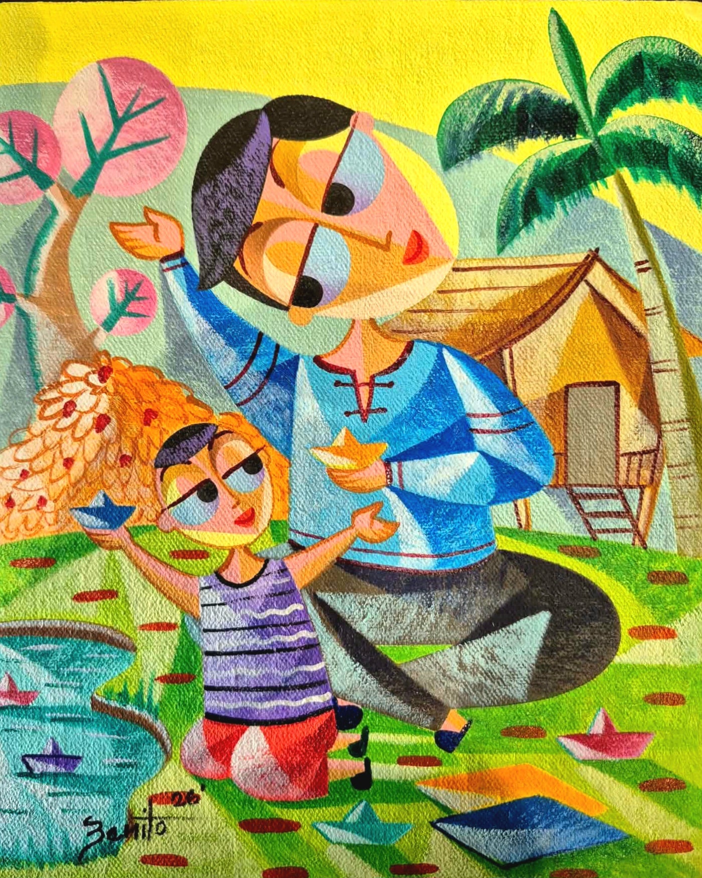 Jovan Benito 40 years old From Sta Cruz Laguna Born April 12 1982 Elementary 88 – 94 Secondary 94- 98 Nagsimula ang aking inters sa pag guhit ay nung bata pa ako. Dahil ang aking ama ay isang art sign artist, bata pa lang ako ay un na ang ikanabubuhay ng aming pamilya, kaya ganun ba lang ang aking bilib sa pag guhit ng aking ama, kaya di malabong , hindi ako mahihilig sa pag guhit. Ngunit maagang nawala ang aking ama maagang nakapag asawa , at yun ay si Jerry Morada , at ang nakakatuwabg isipin isa rin itong artist. Non nakita nya ang hilig ko sa pag guhit , dahil naging libangan ko ang gumuhit ng project sa school ng mga studyante, ang aking asawa pa lang ang nag pipinta non, mibsan sinubukan nya akong gawing aprentice at , nagtagal iyo, naisip nya rin na pagawain ako ng aking gusto. Dito ko naisip ang stilo, ang bilugang mga mata at makukulay na pilipinyanang mga danit.