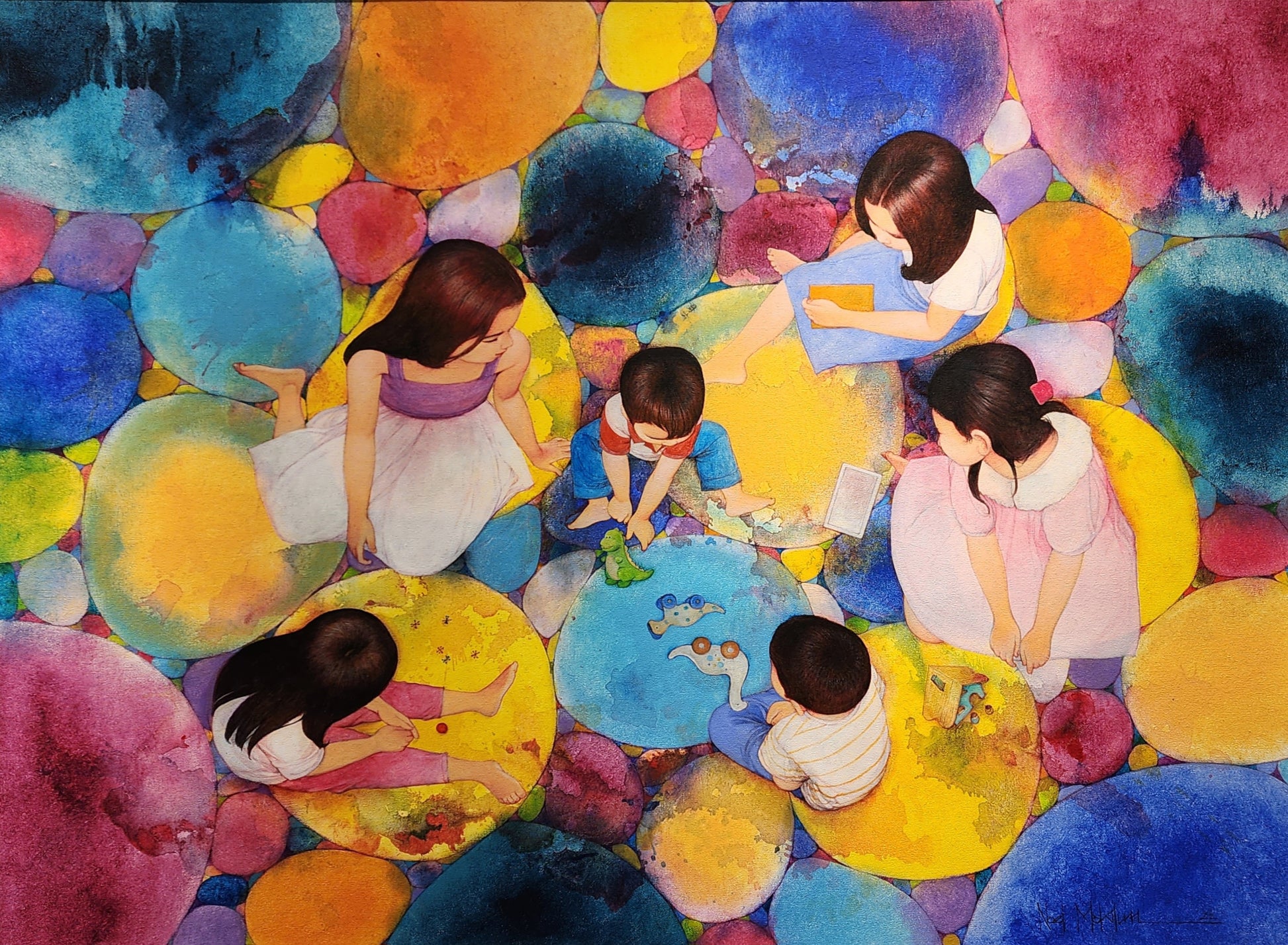 The composition of the stones, though may appear haphazard, are actually well thought of. For the artist, these stones represent people and life on earth. Looking at everything from a distance, each has its place in the grand picture. No stone unneeded nor out of place, waiting for someone to sit down and observe them carefully.