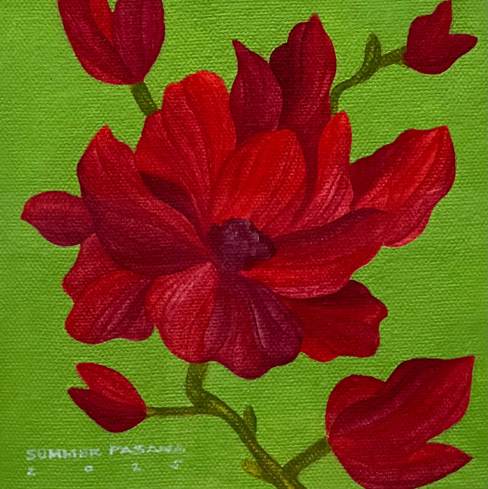 Today, she is focused on creating beautiful, meaningful, and intricate pieces of floral-themed art that showcase a unique blend of design skills and artistic talent. Her art style is a bold and colorful take on floral themes, with a strong focus on detailed composition and vibrant color palettes that bring each piece to life.
