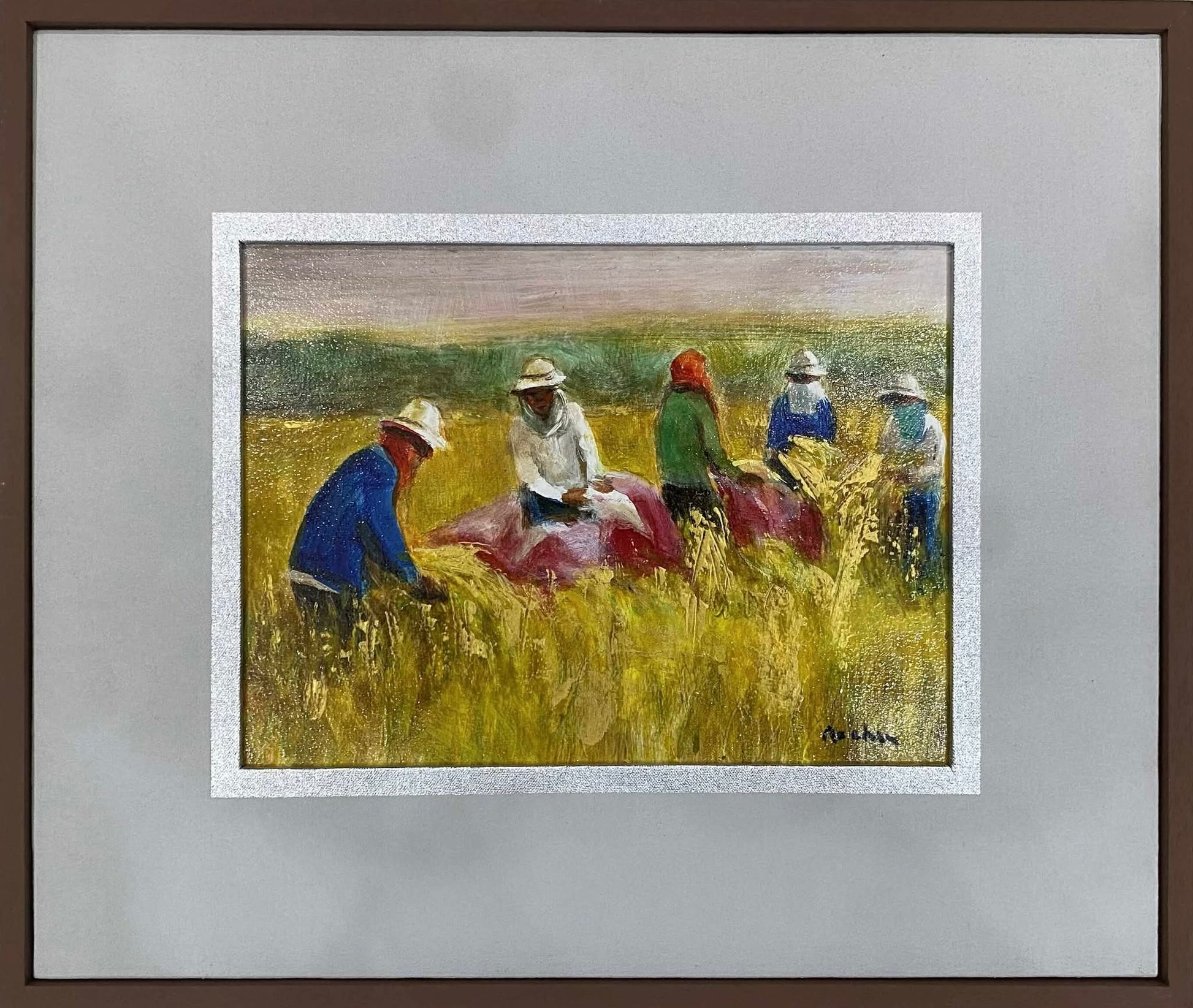 Best known for his portrayals of women, Rocha's landscape works, particularly those depicting figures in rural settings, reveal his greatest skill. His use of warm, golden tones in scenes of harvest and daily life conveys a sense of abundance and joy, while subtly exploring feelings of isolation and the quiet spaces between human interactions. Rocha's ability to weave traditional Filipino imagery with a contemporary lens creates a bridge between past and present, making his art deeply relevant to modern audiences especially those who have lived through recent global challenges.