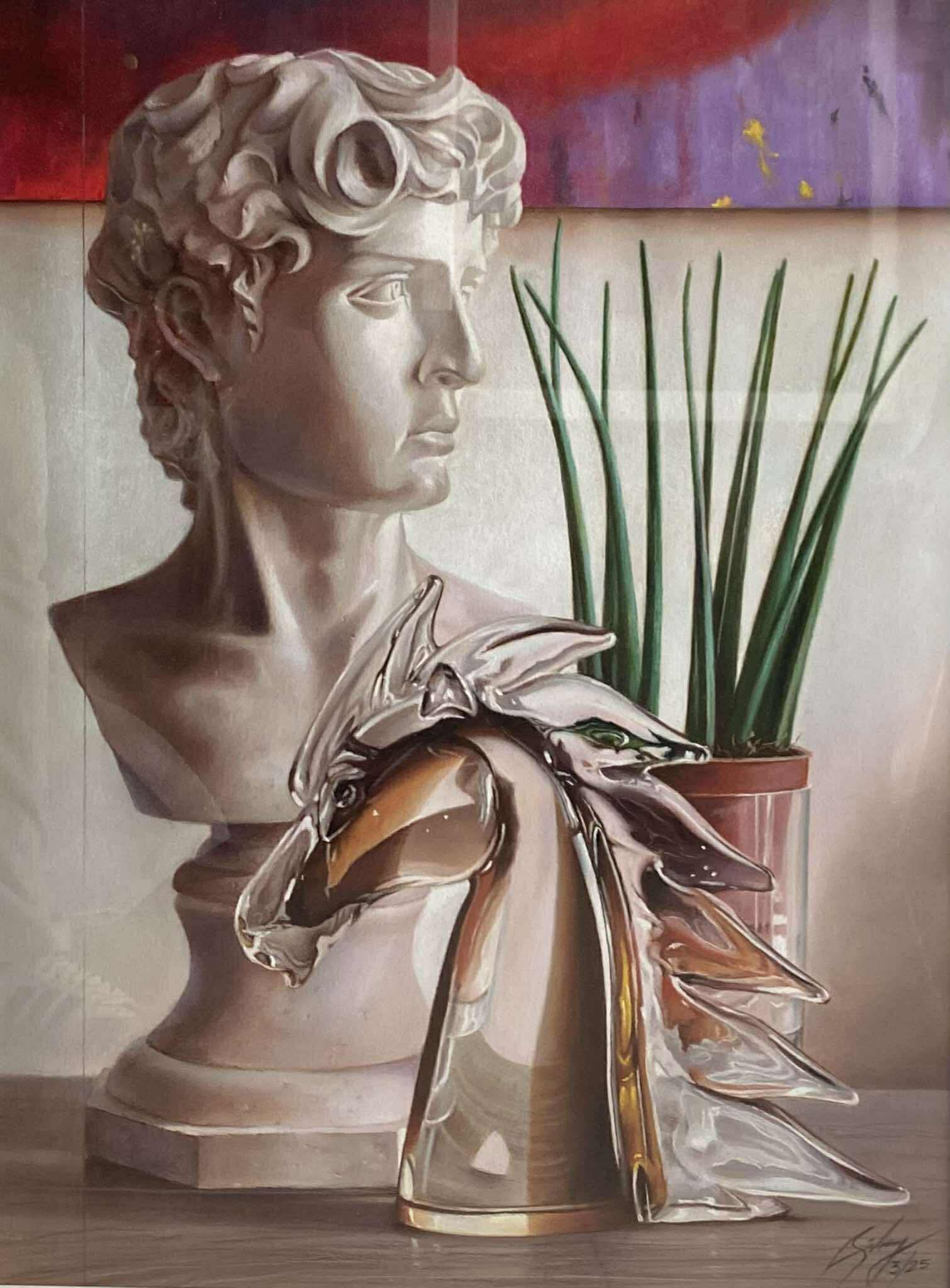 Such an artist is Alex "Bugsy" Sibug. His exquisite artworks in the difficult medium of soft pasters are done in the technically exacting tromped l'oeil technique. The term comes from the French tongue, which literally means "to deceive the eye." Meticulously and painstakingly rendered to mimic reality, Sibug's compositions are the quintessential definition of illusion, successfully tricking the viewer's definition of illusion, successfully tricking the viewer's eyes into believing that the pigments carefully and strategically laid out on paper by the masterful hand of the artists.