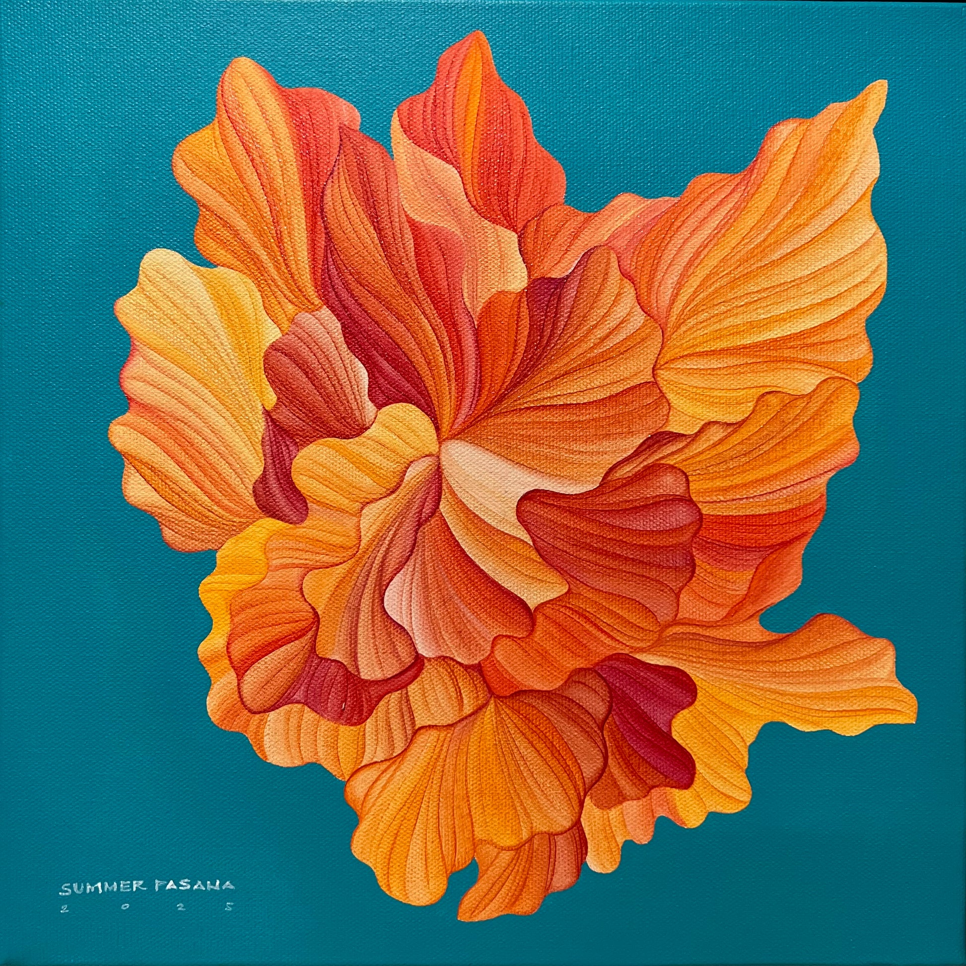 Today, she is focused on creating beautiful, meaningful, and intricate pieces of floral-themed art that showcase a unique blend of design skills and artistic talent. Her art style is a bold and colorful take on floral themes, with a strong focus on detailed composition and vibrant color palettes that bring each piece to life.