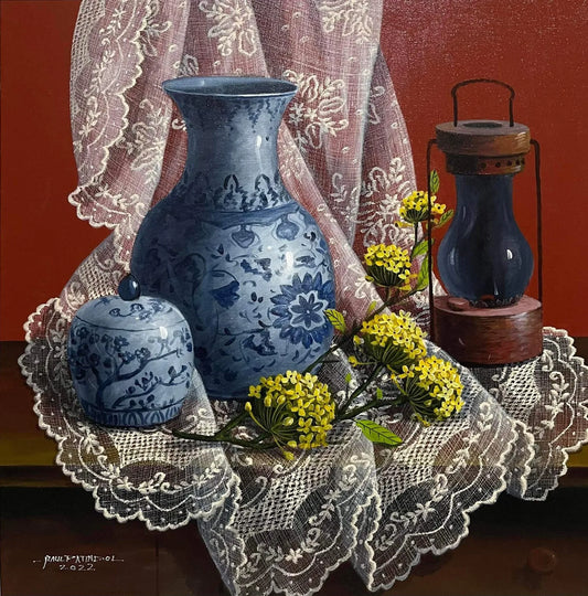 Born on February 27, 1963, in Cebu. Patindol’s realistic impression style stems from Filipino influences. His "still life" pieces are hardly still as they imbue realistic touches seen in layers and textures carefully put together.