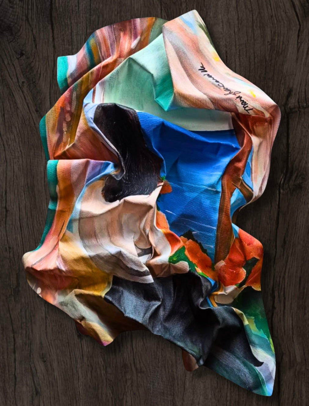 Some goodbyes don't need words. They echo in feeling—in the warmth that remains, in the stillness that speaks louder than sound. She's there stitched into memory's fabric, wrapped in color, held within the beautiful chaos of a moment suspended in time.