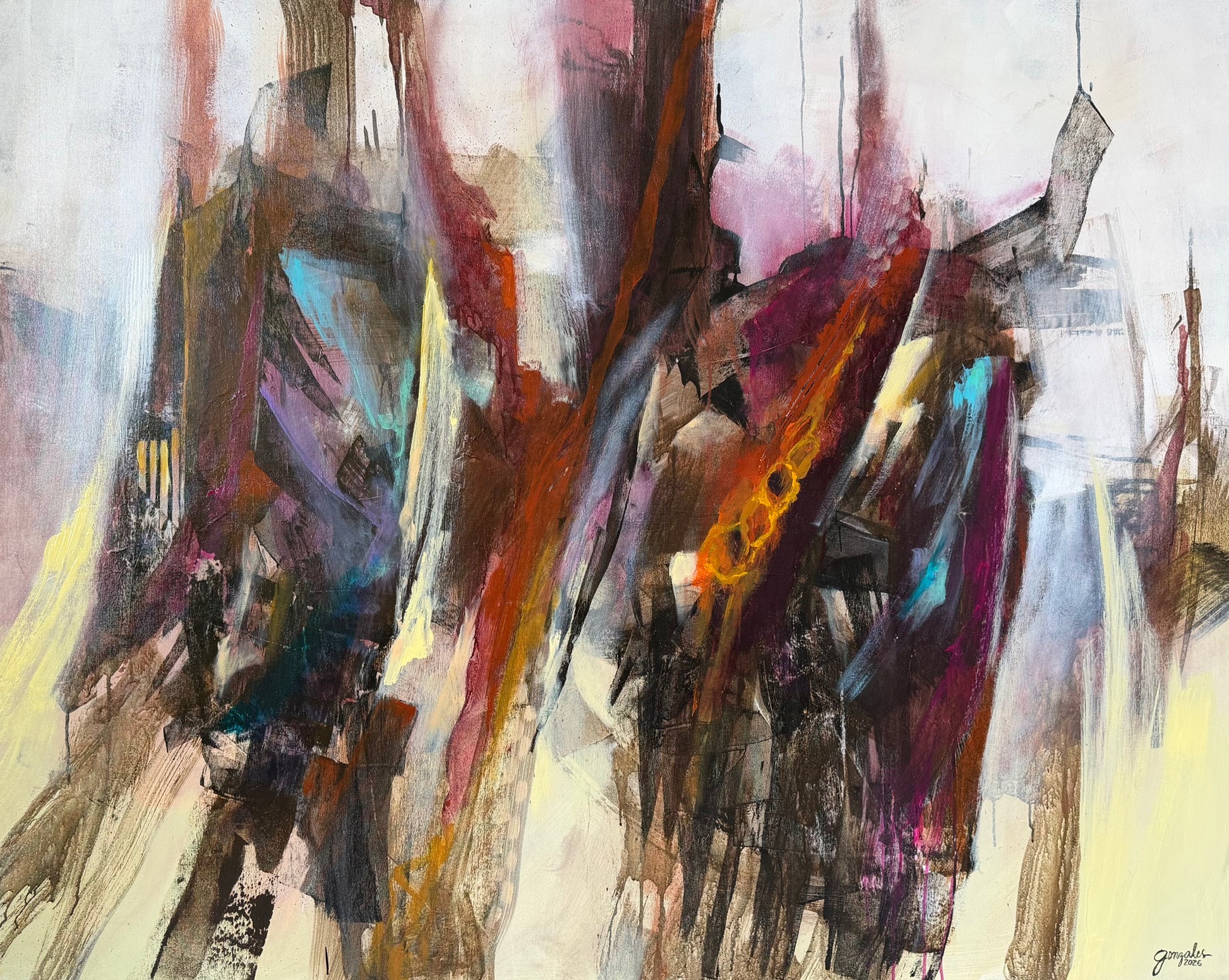 Since beginning his professional painting career in 2020, Gonzales has developed a distinctive visual language characterized by vibrant palettes, soft gestures, and swirling movements that evoke rhythm and atmosphere.